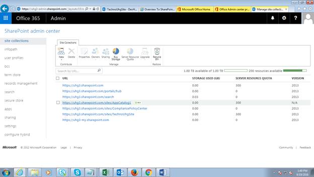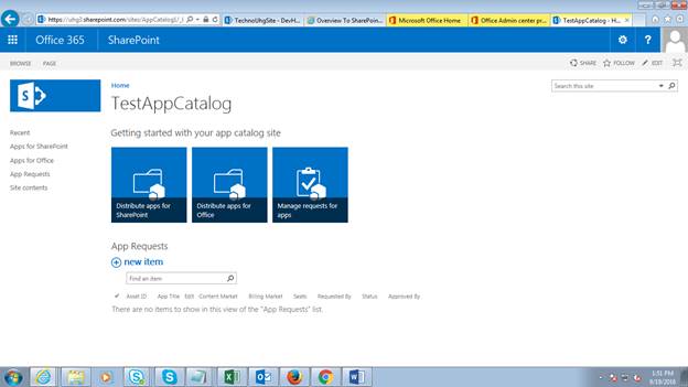 - Successfully, the App Catalog site collection has been created. If you want to upload the app to App Catalog, click on the app of the left navigation and click on App Catalog.