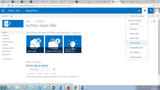 - Go to your Site Collection, open then Site contents page from right hand side.