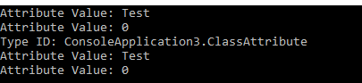 - Console.WriteLine("Attribute Value: " + ((ClassAttribute) attrib).Number);
