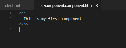 In the code given above, we can see that if we want to use this component, then we need to use the “app-first-component” selector. Let’s add this selector in our HTML file.