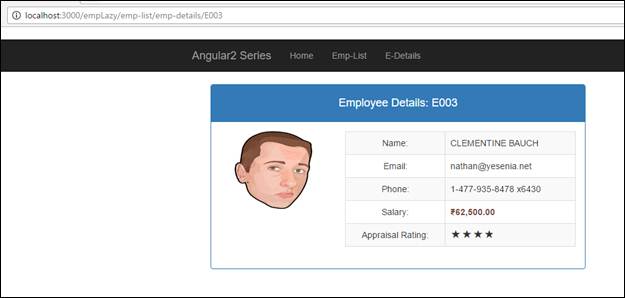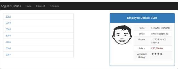 On click of E-Details, you’ll be navigated to EmployeeInfoComponent.