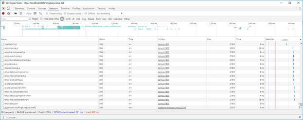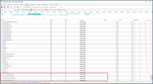 I’m accessing home page of our application but in the network tab, you can see the application loads everything including the “employee-module” which is not been accessed by the user. Below snap describes the same.