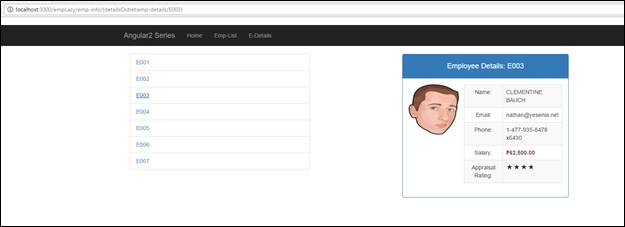 On click of EmpId, you’ll be navigated to the EmployeeDetailsComponent. Below is the snap for the same.