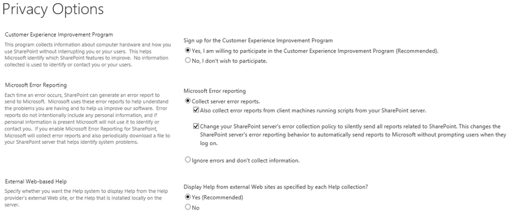 - Privacy Options  http://<SharePoint_URL>/_admin/Privacy.aspx