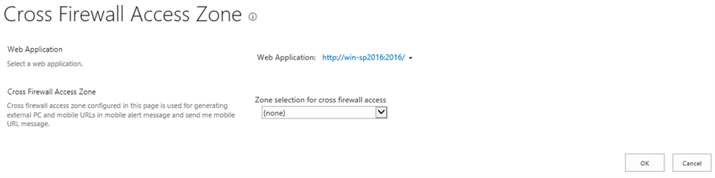 - System Settings  http://<SharePoint_URL>/_admin/SelectCrossFirewallAccessZone.aspx