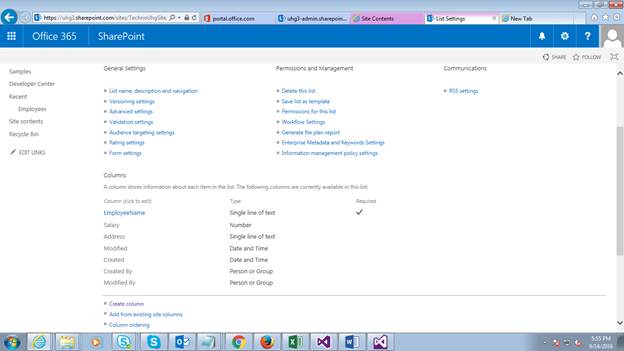 - On Ribbon, Go to List Settings-> Under Columns Section Create three new columns.