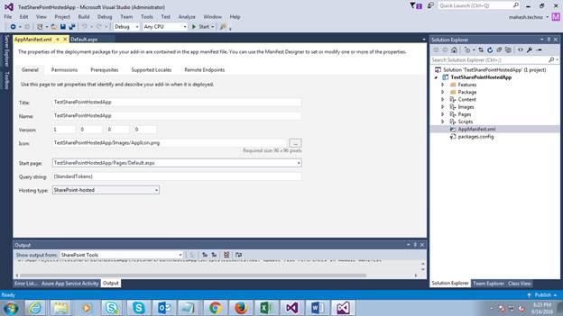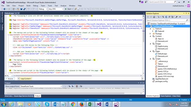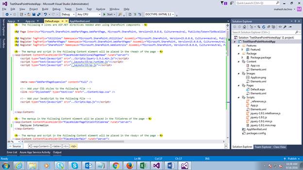 - Create Project in Visual Studio (Selecting SharePoint Hosted App)