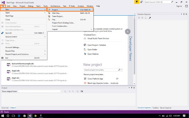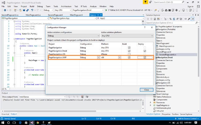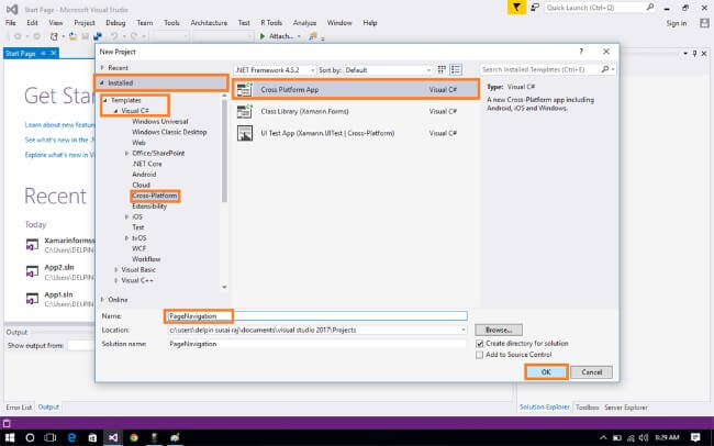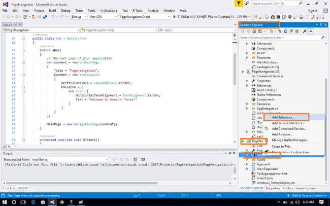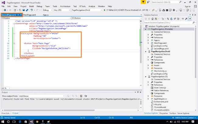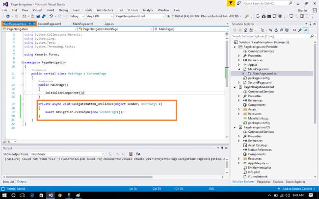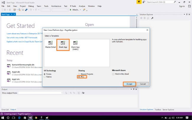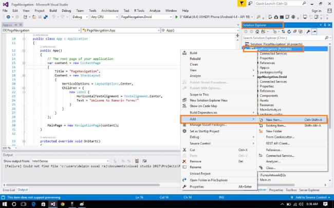 The steps given below are required to be followed in order to navigate from one page to another page in Xamarin.Forms, using Visual Studio.