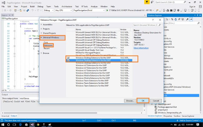 Now, go to Solution Explorer. In Solution Explorer, get all the files and source in your project. You can add Universal Windows Platform (UWP). In Reference, go to Solution Explorer-->Your Project-->UWP-->Reference-->Right Click --> Select Add reference.