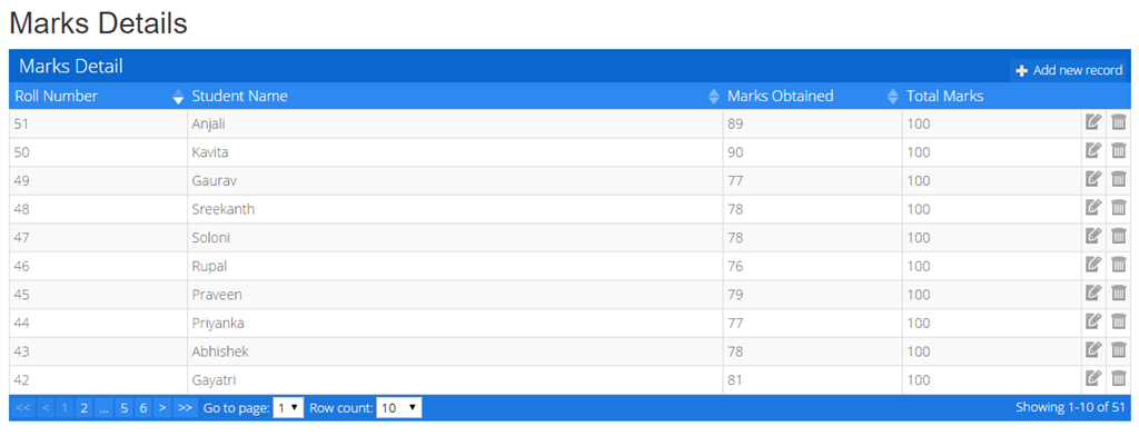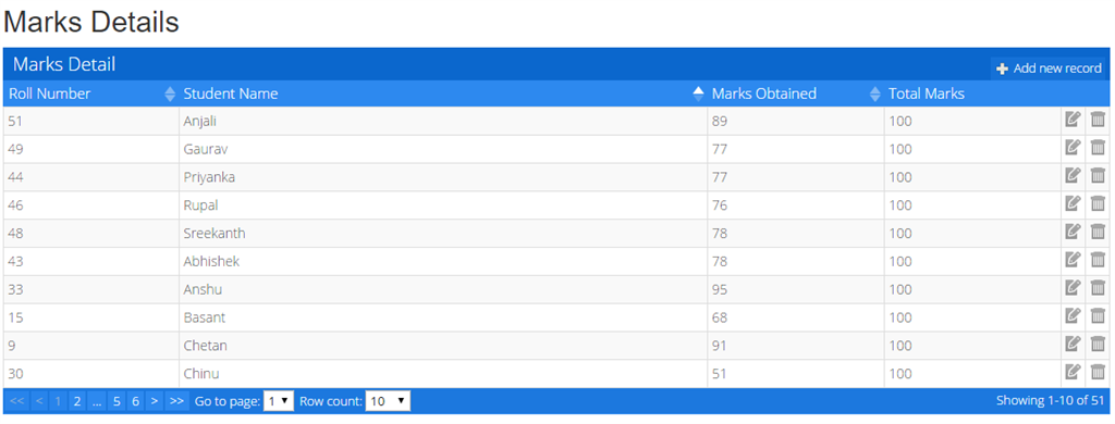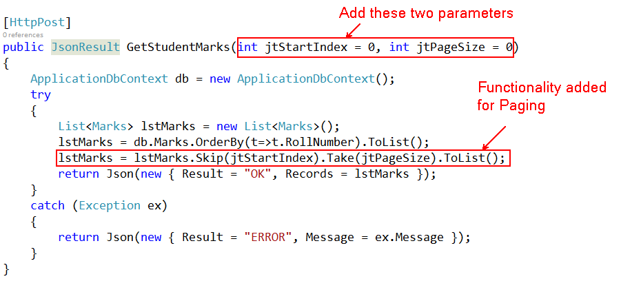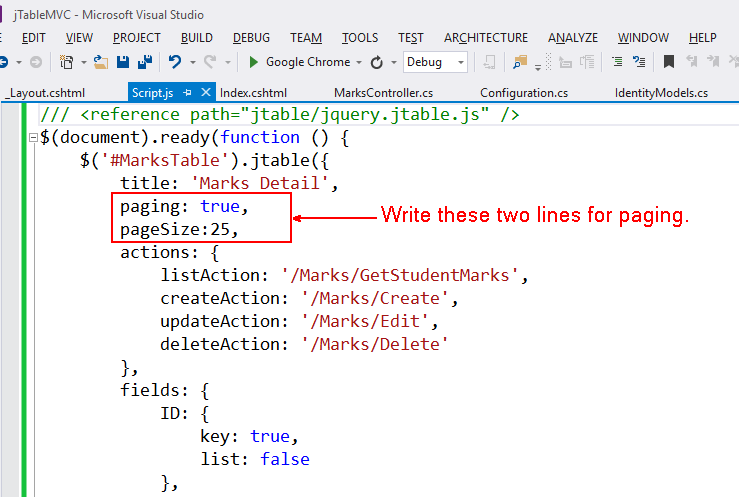 Paging in jTable: To perform paging in jTable using MVC you have to follow the below given steps: