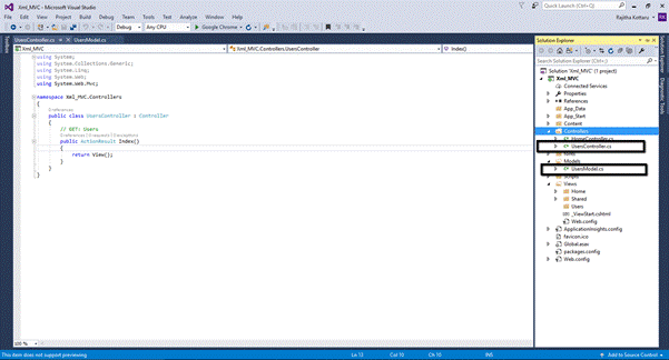 - using Xml_MVC.Models; (Xml_MVC - > project where the models are present)