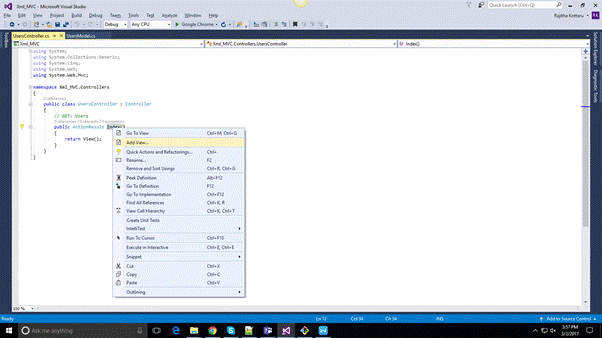 Go to UsersController -> right click on Index() action -> select "Add View".