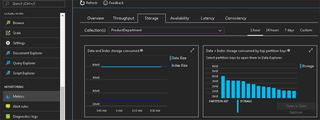 - For example, let's say that you're storing JSON data about employees and your partition key is "department." Then all documents with the value of "department" equal to "engineering" will be stored in the same partition. Similarly, all documents with "department" of "marketing" will be stored in the same partition.