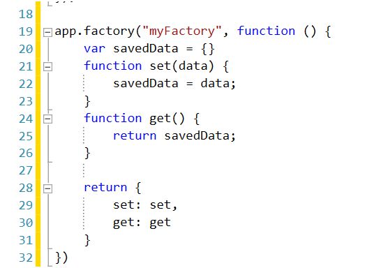 We can see in this controller that we are injecting myFactory and in edit function, we are assigning data to this Service.