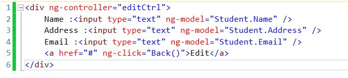 Now, create Edit.html in this and for this page, we are creating EditCtrl controller. In this controller, we are receiving data from my factory.