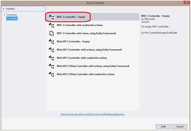 Select MVC 5 Empty Controller. Click Add.