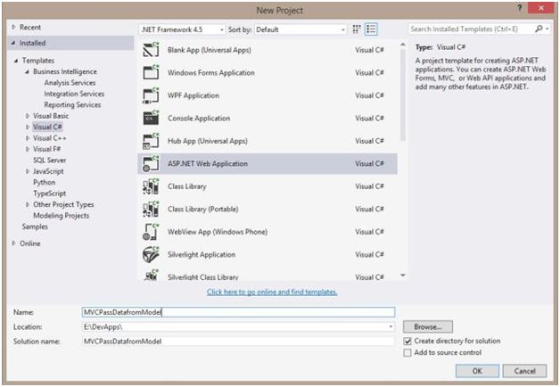 I hope the above articles are clear by now. Let us start with the application. Open Visual Studio. Go to File->New->Project. Give a suitable name to the application. Click OK.