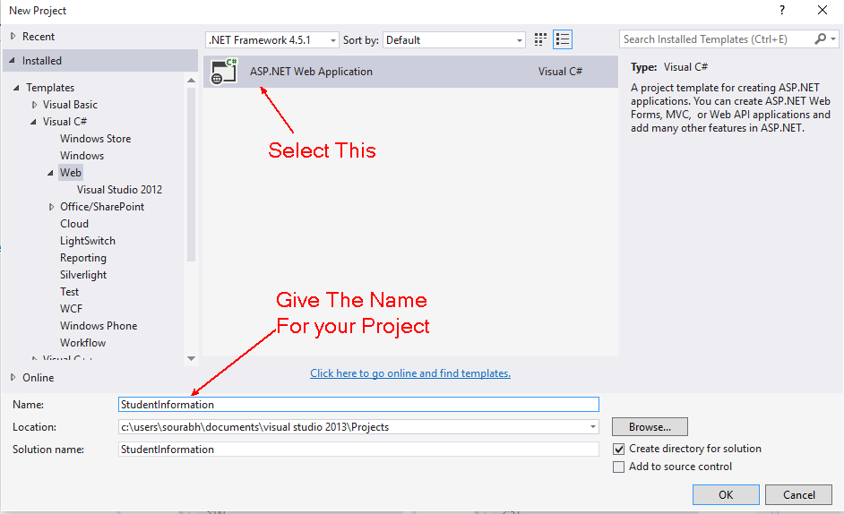 1. Create a new MVC Project and give the name for your project. To create a new MVC project, Click File > New > Project or press CTRL + SHIFT + N.