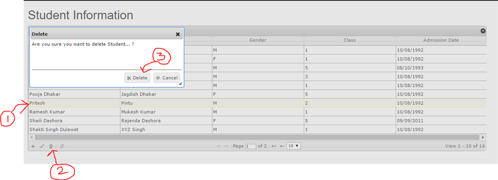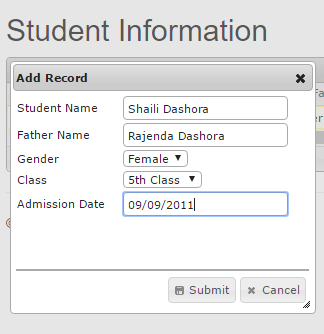 - colNames: ['ID', 'Student Name', 'Father Name', 'Gender', 'Class', 'Admission Date'],