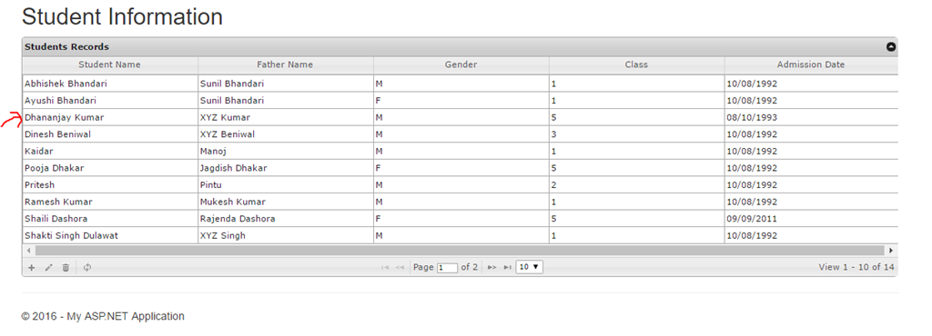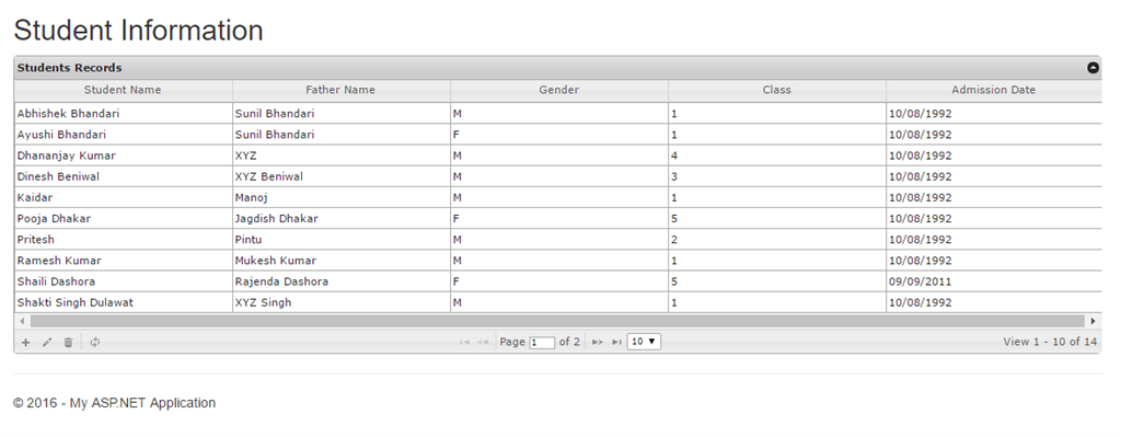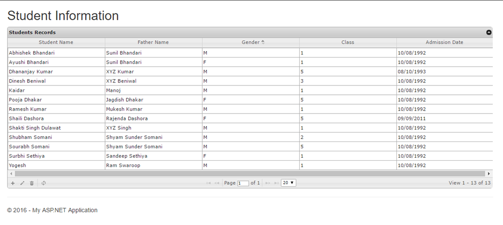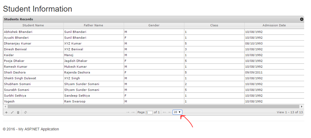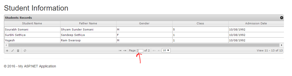 - public JsonResult GetStudents(string sidx, string sort, int page, int rows)