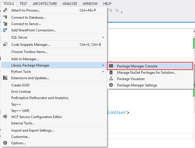11. Now build your project once and again open Package Manager Console and write the following code to generate tables and database.