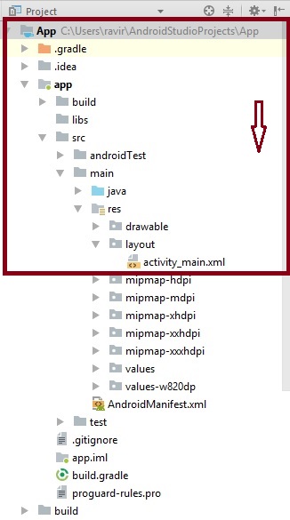 Next, extract the app >> src >> main >> res >> layout folder and click open the activity_main.xml page.
