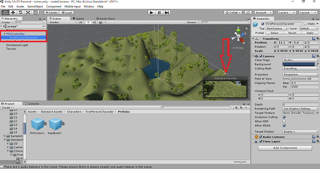 Click on the First Person Character. The camera preview will be displayed like the following.