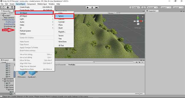 Go to the Game Object menu in the menu bar. Select 3D Object >> Sphere.