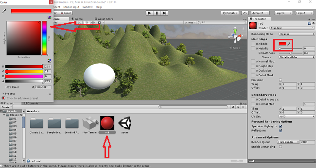 Drag and drop the Material into sphere. The sphere color will now be changed.