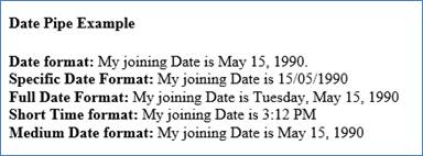 - <b>Medium Date format:</b> My joining Date is {{joiningDate | date:"mediumDate"}}<br/>