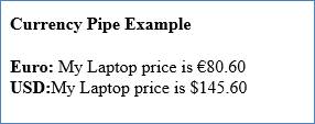 - <b>Euro: </b> My Laptop price is {{priceEuro | currency:'EUR':true}} <br/>