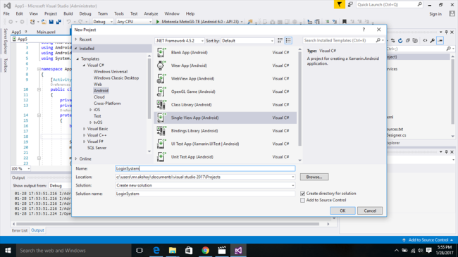 Then, you need to select Android template from the list, name the application, and press to create the Project and select where to save the project.