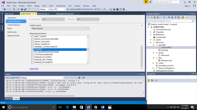 Note: Add the Subfolder Raw under the Resources folder and add the music file in this folder.