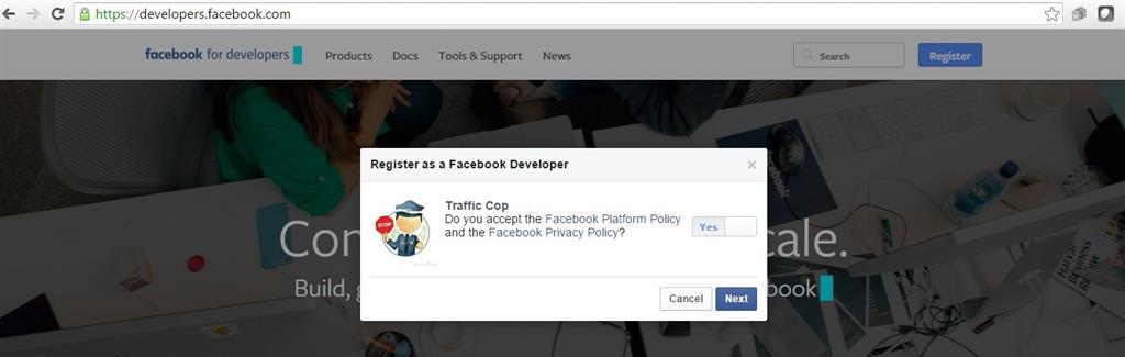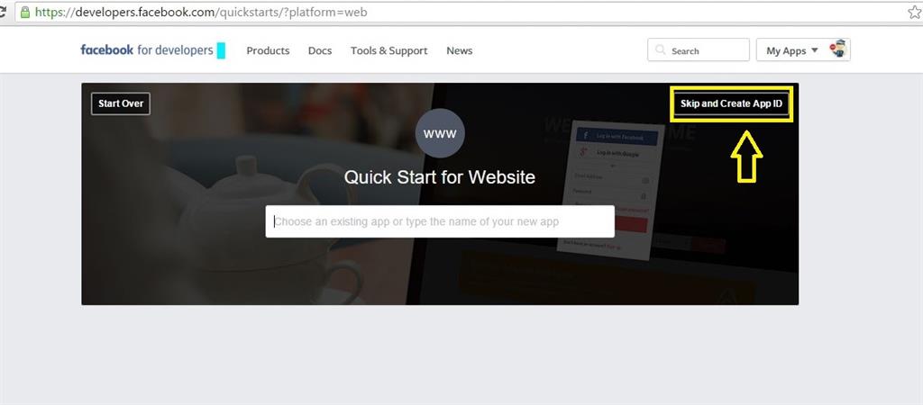 Visit Facebook Developer Page as in the following screenshot: