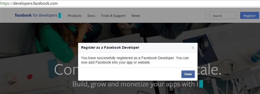 In order to get an App Id and Secret key we need to register a new application