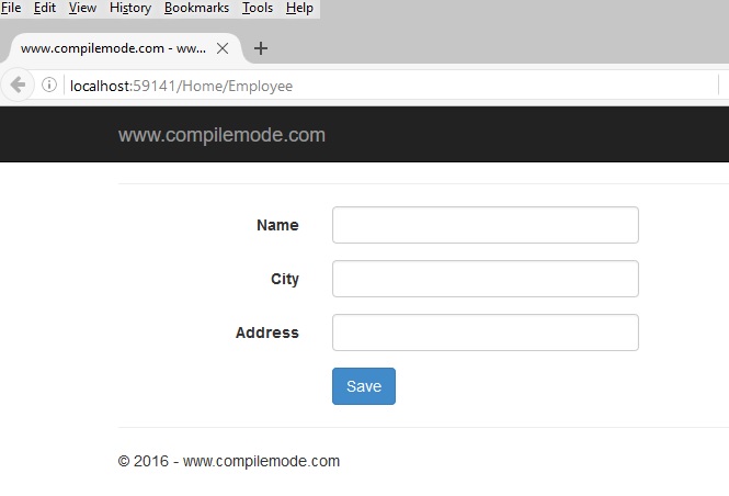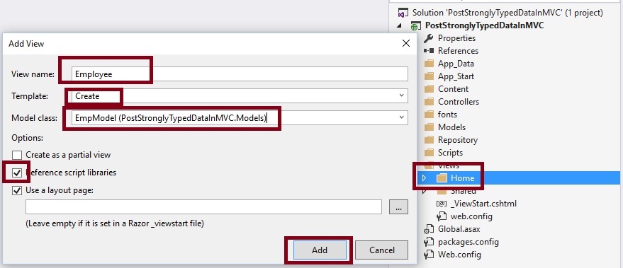 Right click on View folder of created MVC application project and add empty view named Employee.cshtml.
