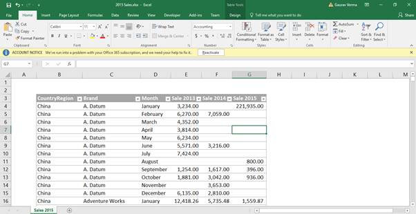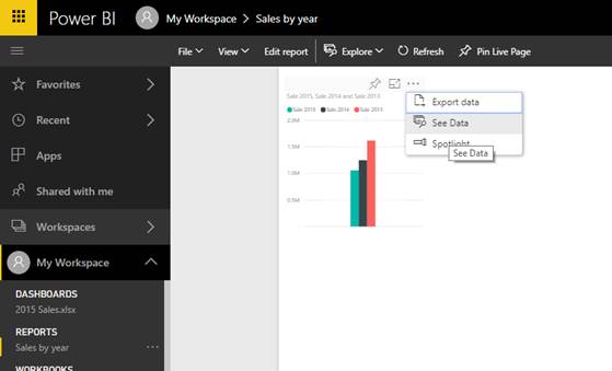 I have created a report SALE 2015, SALE 2014, and SALE 2013. By clicking "See data", we can expand the Report View.