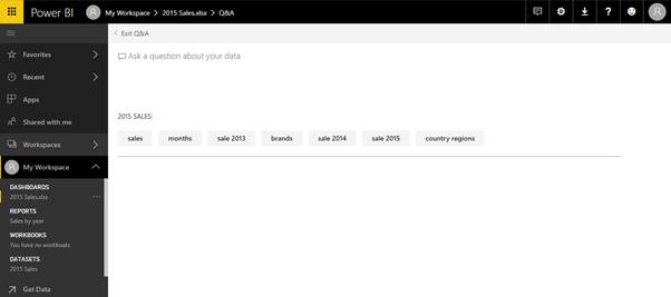 Now, in the below screen, the Power BI displays its natural language capabilities, which shows that we can create dashboards and reports as per the data in the Excel sheet.