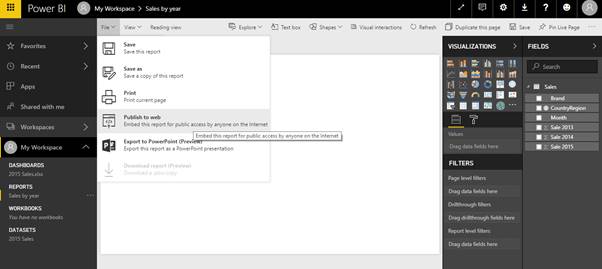 If we want to publish this report to the web, click on the file and select "Publish to web".
