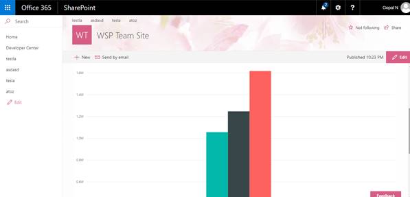 Paste the embedded code in the Embed code web part, save the page. Given below is the graph that can be seen.