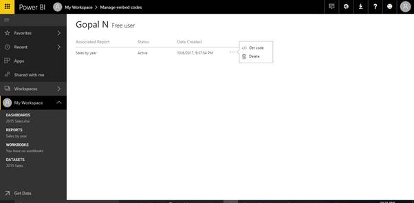 Click on "Delete" for the embedded code of the "Sales by year" report.