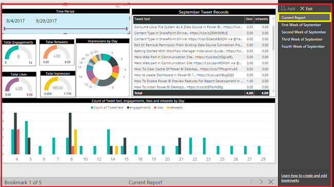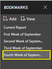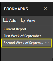 First, I want to retain the state of current report so I will add it as bookmark and give the bookmark name as Current Report.