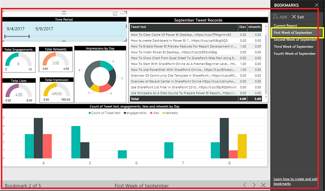 Now, I want to store this filtered report. So, I will add the same as bookmark and rename it as first week of September.