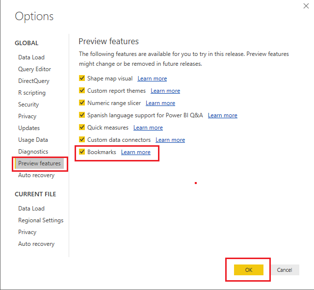 - Enable Preview Feature for bookmark ( To know how to enable preview feature in Power BI Desktop visit my Blog)