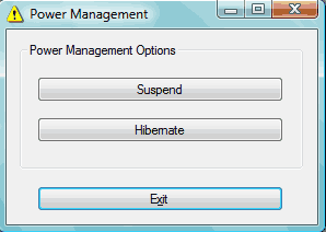 There is only a single form in the application (frmMain) and that form contains all of the code necessary to perform all of the functions described in the introduction: Suspend, and Hibernate. The class begins with the normal defaults.