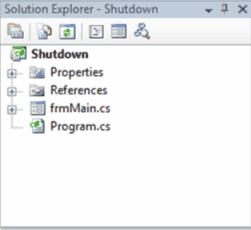 The solution provided with this download contains a single project entitled, "Shutdown". The project is described in the Solution Explorer (Figure 2). The project contains only the default references for a Windows Forms application. All of the code written for this project is included in frmMain.