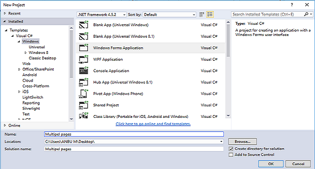 Click New >> Project >> Visual C# >> Windows >> Windows Forms Application. Enter your Project name and click OK.