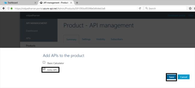 Now we need to add the echo API to API management, click->products and from API management menu->click->API management for configuring the product.