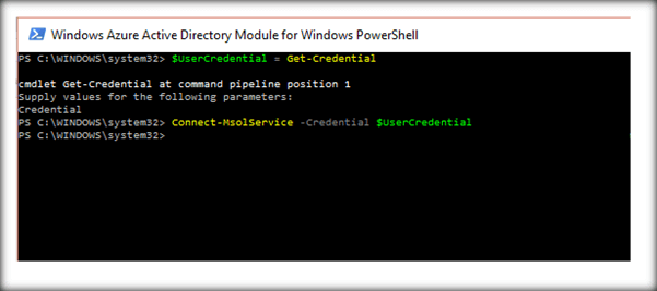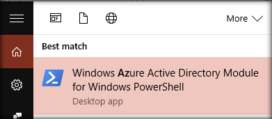Once the PowerShell module is installed, spin up ‘Azure Active Directory Module for Windows PowerShell’.