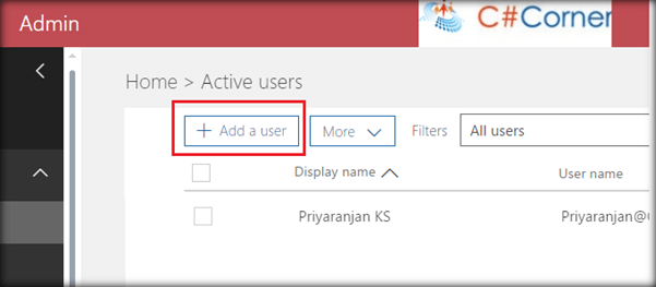 We can perform the same operation from the UI. In order to do this, navigate to the Admin Center and from ‘Users’ section, select ‘Add User’.